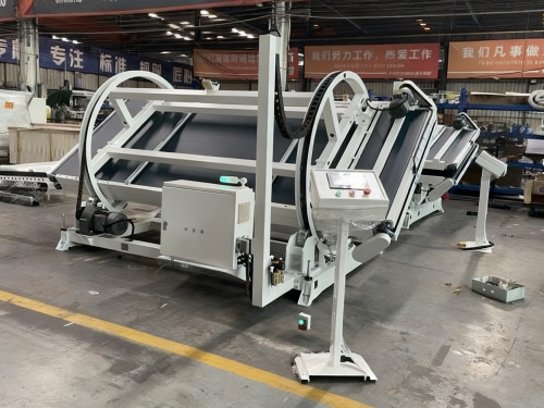 Este es unMáquina inteligente de rotación de correas FORTRAN, un tipo de equipo de automatización industrial que se utiliza principalmente para voltear eficientemente materiales durante el transporte.